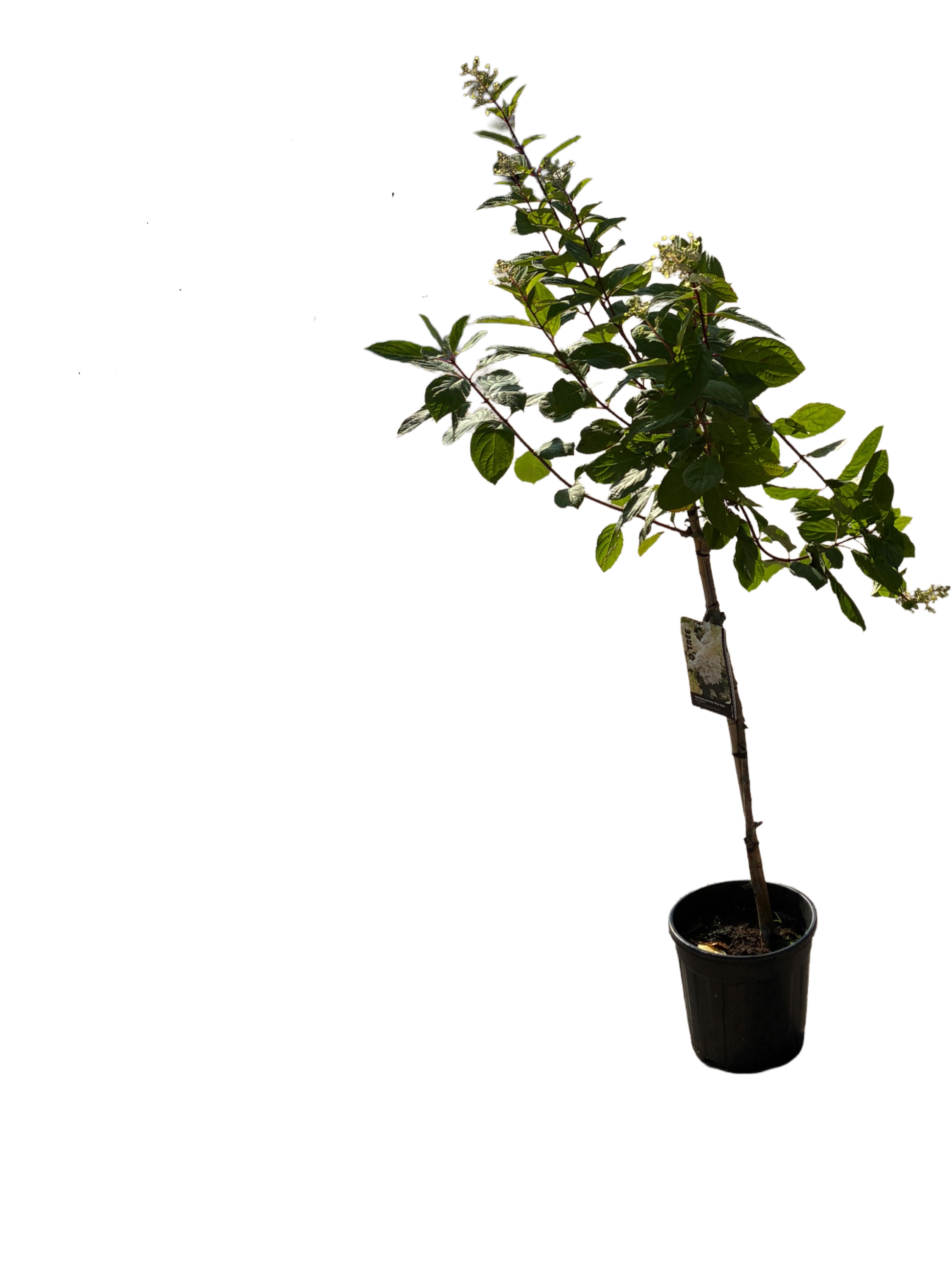 De Hydrangea paniculata 'Silver Dollar' is een compacte, rijkbloeiende pluimhortensia die bekendstaat om zijn stevige groei en opvallende witte bloempluimen. Deze cultivar bereikt een hoogte van ongeveer 150 centimeter. 'Silver Dollar' gedijt het best op een zonnige tot halfschaduwrijke locatie. De voorkeur gaat uit naar een voedzame, goed doorlatende bodem die licht zuur tot neutraal is. De 'Silver Dollar' produceert grote, kegelvormige bloempluimen die beginnen in een crèmewitte kleur en later verkleuren naar lichtroze. De bloei vindt plaats van juli tot oktober. Het is aan te raden om de plant in het vroege voorjaar (februari of maart) terug te snoeien tot ongeveer 20–30 cm boven de grond