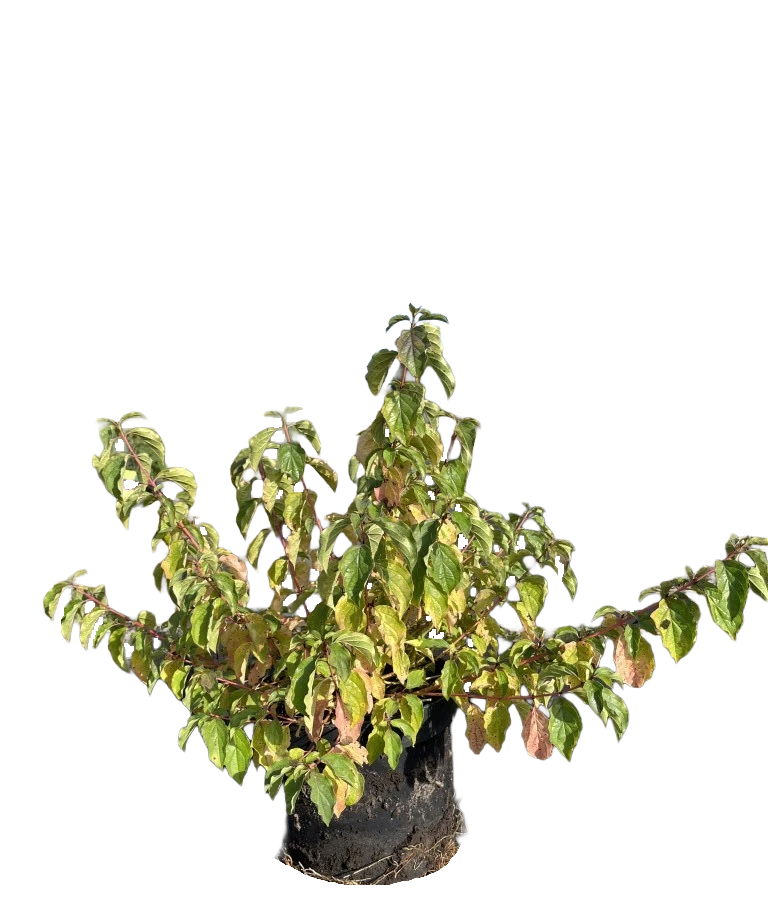 De Cornus sanguinea 'Midwinter Fire' is een bladverliezende heester die in de winter opvalt door zijn schitterende takken in warme tinten van oranje, rood en geel. Deze bijzondere kleurcombinatie maakt hem een echte blikvanger in de tuin, vooral tijdens de koudere maanden. In het voorjaar bloeit deze kornoelje met witte bloemen, gevolgd door kleine zwarte besjes die zeer geliefd zijn bij vogels. Dankzij zijn seizoensgebonden schoonheid is de Cornus sanguinea 'Midwinter Fire' een waardevolle toevoeging aan de tuin of omgeving.